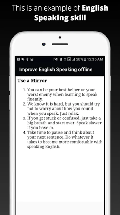 if you feel hesitation in English Speaking or weak English Speaking practice skills, lack of confidence to talk in English but you have the basic knowledge of Speaking English & the English Grammar, how to speak real English, this app guide you step by steps to get fluency in English Speaking to Learn English Speaking skills offline.