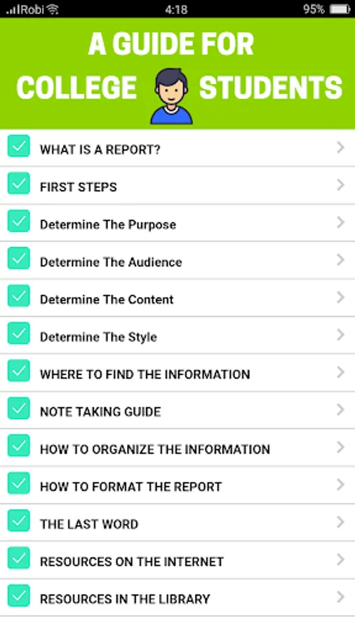 This Apps will guide you step by step for creating a Very Good and excellent Report. Download How to Write a Report Now!
