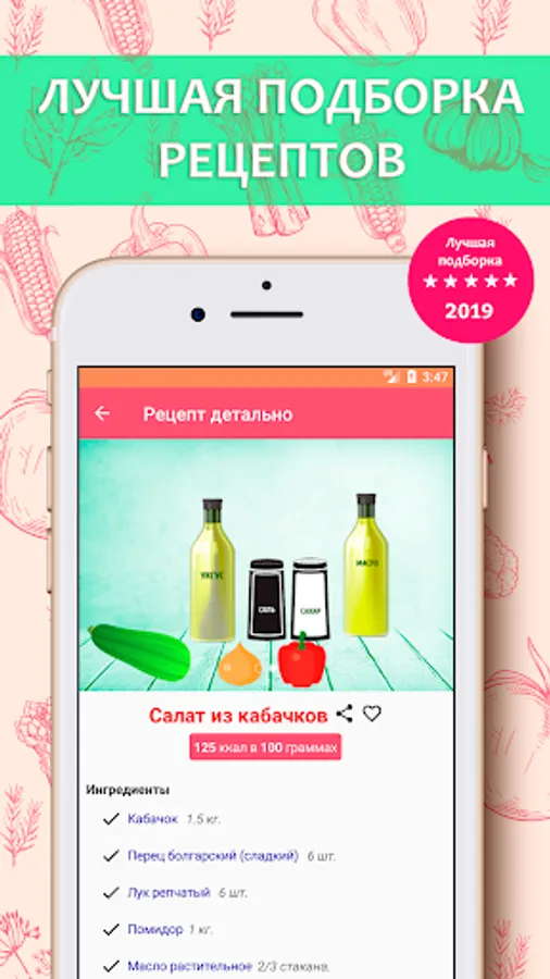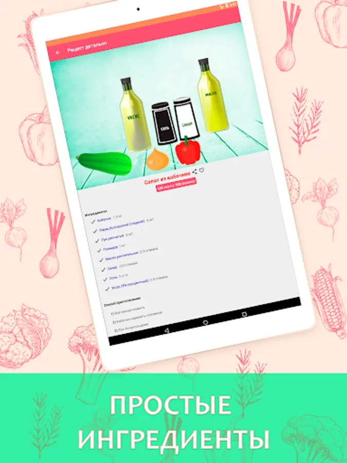 In the application, in addition to step-by-step instructions, you will find the approximate cooking time, as well as the calorie content of each dish.