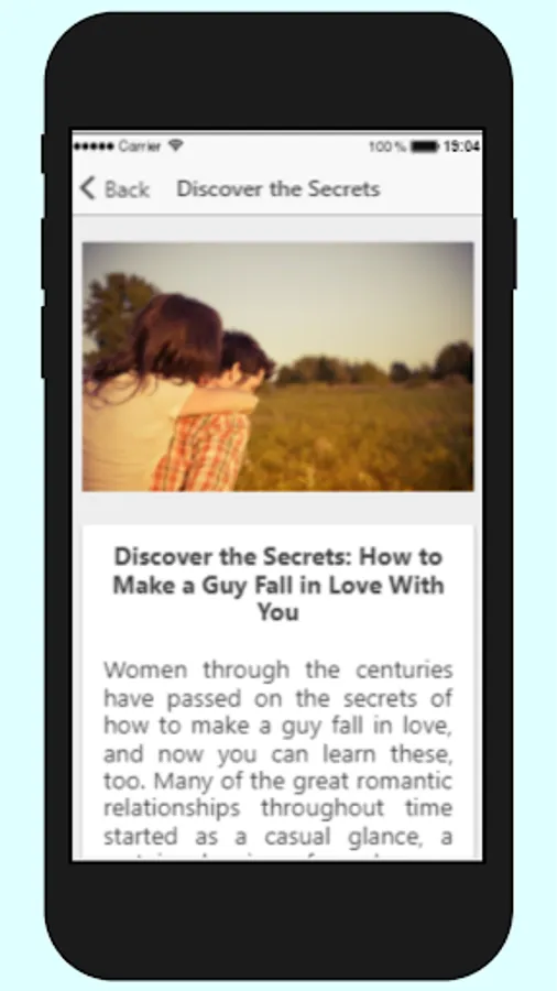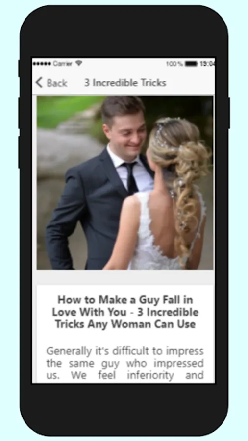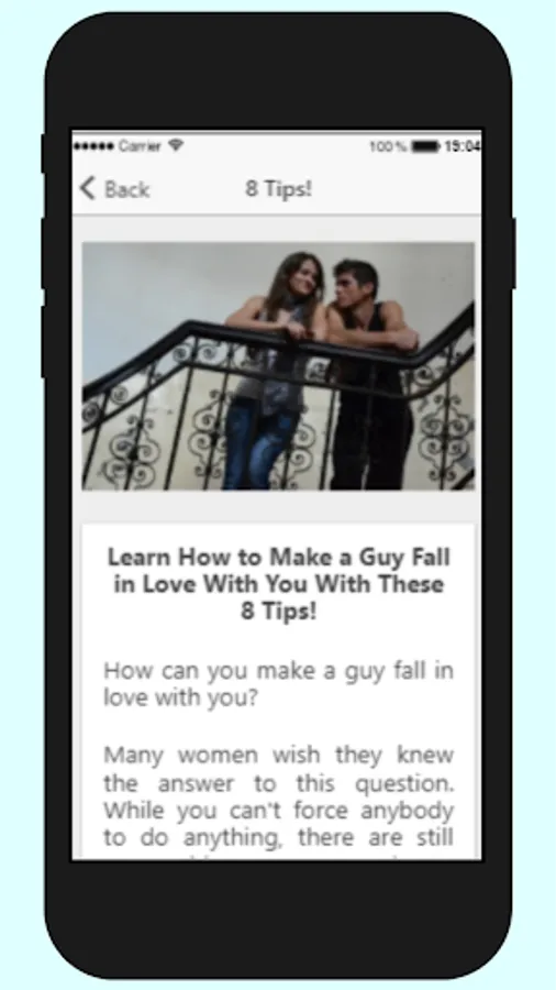 How To Make A Guy Fall In Love With You is an Application that helps a woman to find out makes something necessary for you and just needs an interesting conversation and make yourself a femininity girl who will make someone fall in love with you and He's the man of your dreams, and you adore him. You want him by your side right now but unfortunately you still do not have him. You're willing to do whatever it takes for him to chase you, like you, get attracted to you and fall madly in love with you but it seems like a huge undertaking.