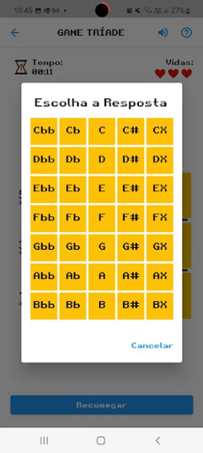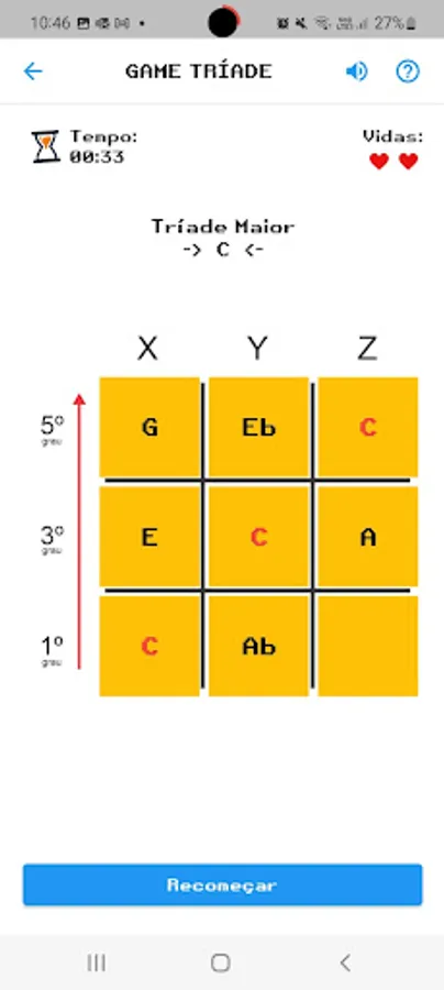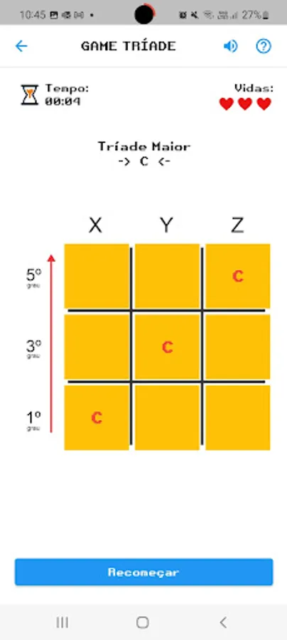 Game for studying and fixing major, minor, diminished and augmented triads in the study of harmony, based on the Turi Collura methodology.