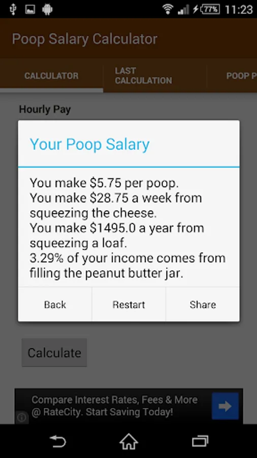 Ever wondered how much money you make while sitting on the toilet on a work day? Well, wonder no more!