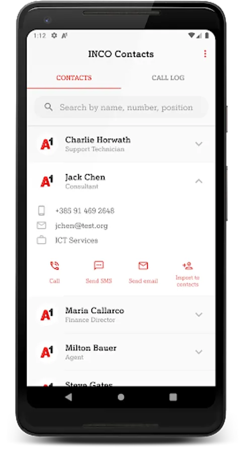 INCO allows employees to (optionally) separate business contacts from private ones, view callers, (optionally) separate business contact lists, and separate call history for business contacts.