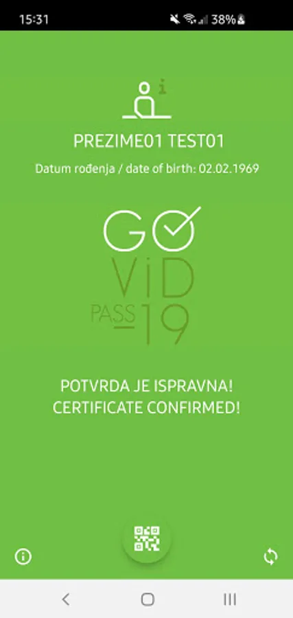 By scanning the code, the mobile application enables verification of the national digital signature of data in the QR code, verification of the validity of the certificate according to the business rules of application in the Republic of Croatia, and printing messages on successful or unsuccessful verification of the digital signature and certificate validity.