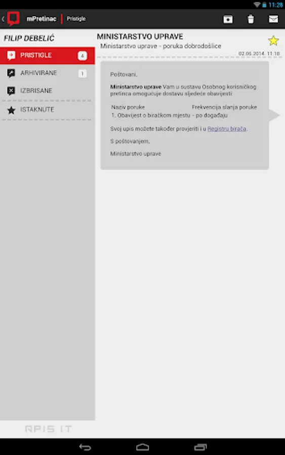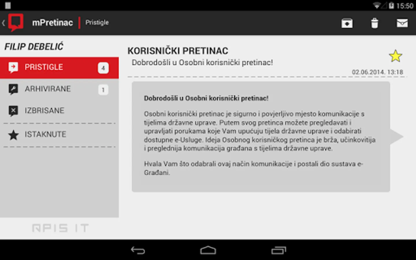 Using applications mPretinac completely safe. mPretinac is protected by a PIN which is known only to the user. The PIN is not stored on the mobile phone, which guarantees the confidentiality of information about the PIN. In case of theft of mobile phones and mobile application attempts to access the Personal User Box, entering incorrect data in the application blocks the user's authority, which prevents undesirable access.