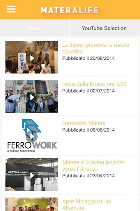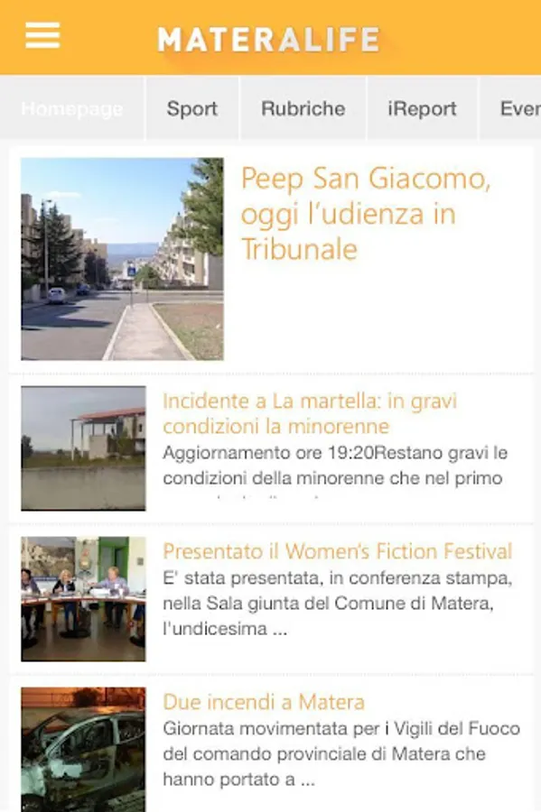 News, videos, photos and events about the new app MateraLife. Content iReport, weather in Matera, the most popular content, headings, sports, and direct access to the portals MateraLife, GravinaLife and AltamuraLife.