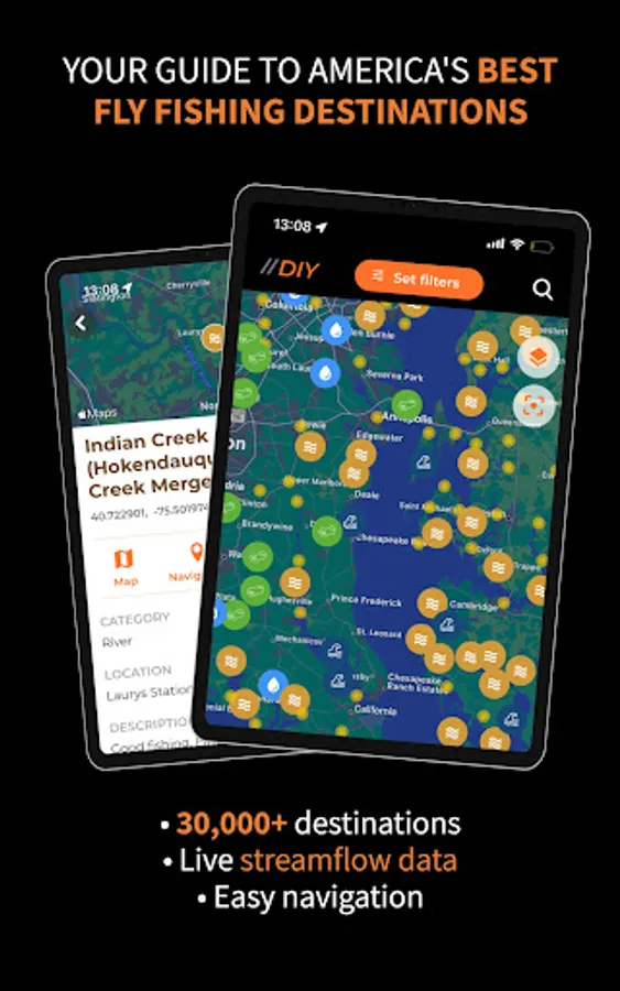 Spend less time looking for places to fish and more time fishing with the DIY Fly Fishing App.