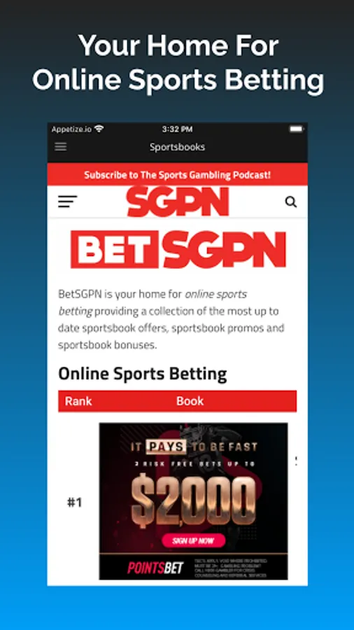 The true separating factor from the Sports Gambling Podcast Network app and other sports gambling apps is the entertainment value. The SGPN hosts and writers that make up the Sports Gambling Podcast Network excel at providing entertaining sports gambling content which makes it truly a must have sports betting app.