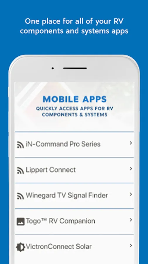 • Access to ALL of your RV's mobile apps (i.e. SolarFlex/Victron, iN•Command)