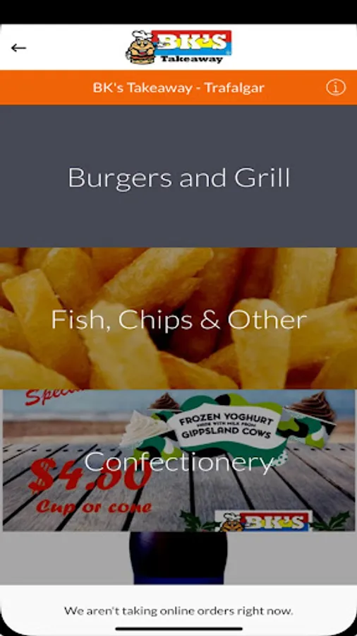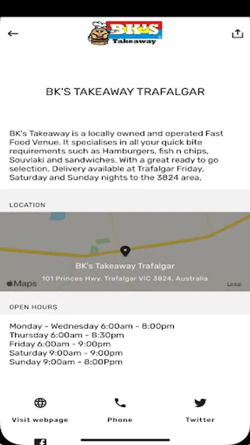 BK’s Takeaway is a locally owned and operated Fast Food Venue. It specialises in all your quick bite requirements such as Hamburgers, fish n chips, Souvlaki and sandwiches. With a great ready to go selection. Delivery available at Trafalgar Friday, Saturday and Sunday nights to the 3824 area.