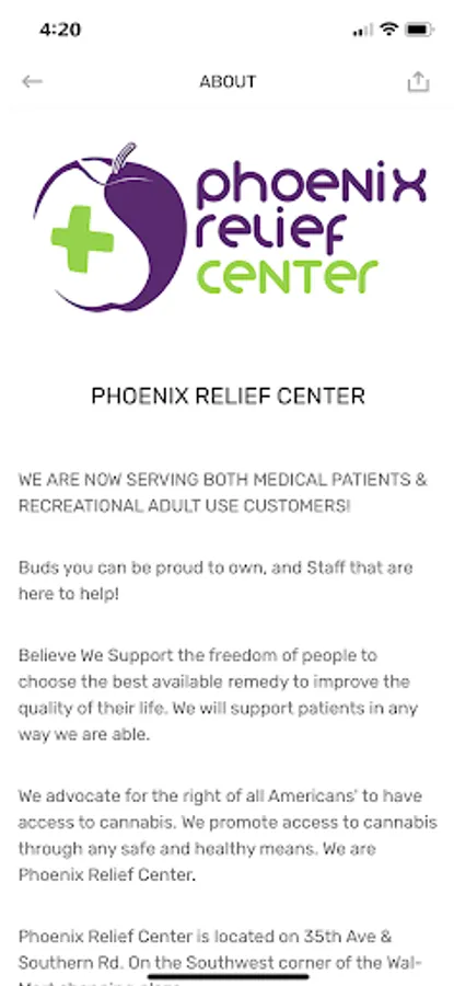 Phoenix Relief Center official app. Use our app to receive updates on deals, specials, and events. Add them to your calendar. Shop our menu! Check out our location, hours, and chat with our staff. If Phoenix Relief Center is your go to spot you need this app!