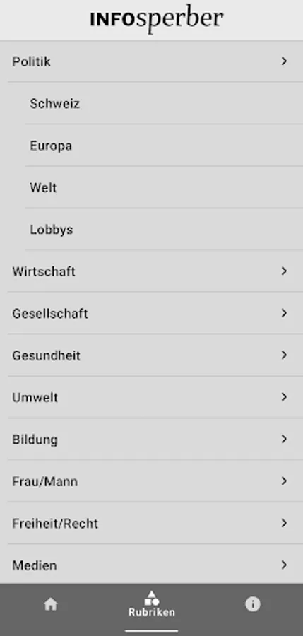 The free app for Swiss Internet newspaper Info Sperber: Independent News weighted by social and political relevance. It focuses on policy, the environment, society, economy, health, education, male / female and the media.