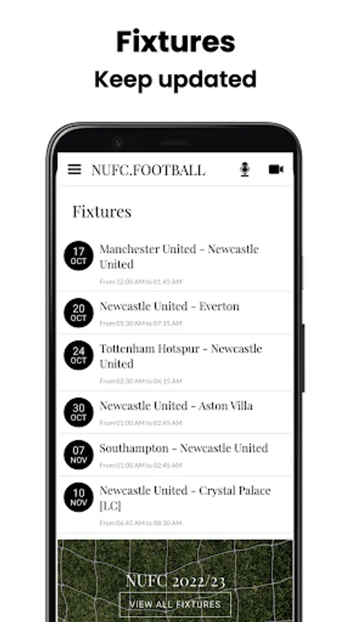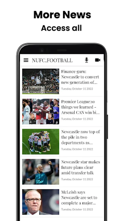 Access to all your favourite NUFC news websites, fixtures, live match commentary, match reports, blogs & podcasts under one app. The Newcastle United football app gives you an easy way to stay connected and updated with everything going on with Newcastle United Football Club.