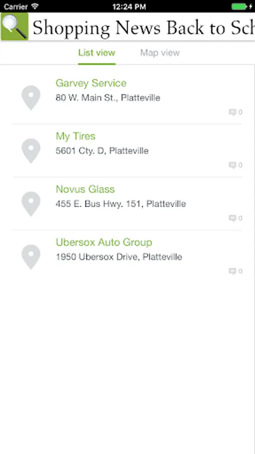 A resource for students near Platteville, WI. This app contains a collection of Restaurants, Automotive Care, Medical, Financial, Entertainment, and Shopping locations