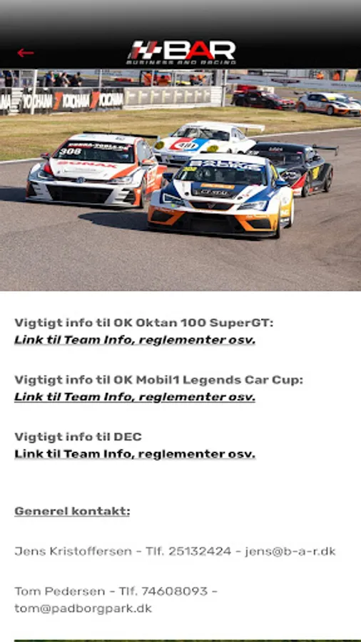 App for drivers and teams in OK Oktan 100 SuperGT, OK Mobil1 Legends Car Cup & DEC.
