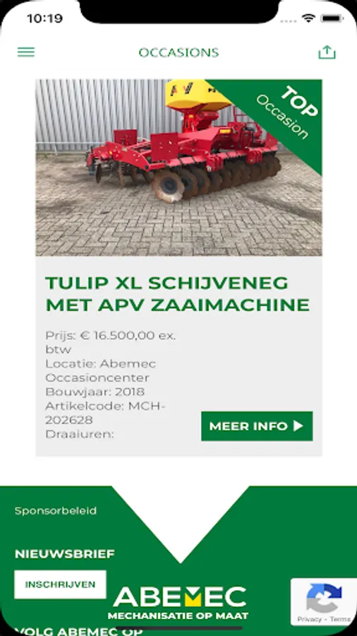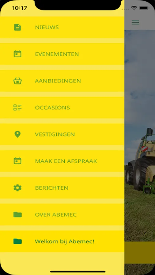 Abemec is een gespecialiseerd landbouwmechanisatiebedrijf voor Nederland met 23 vestigingen. Met de Abemec app blijf je op de hoogte van nieuws en evenementen, ontvang je als eerste aantrekkelijke aanbiedingen, heb je altijd een actueel overzicht van occassions en maak je snel een afspraak met één van onze specialisten.