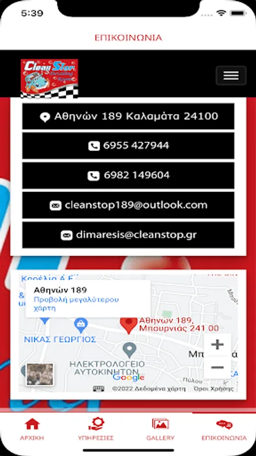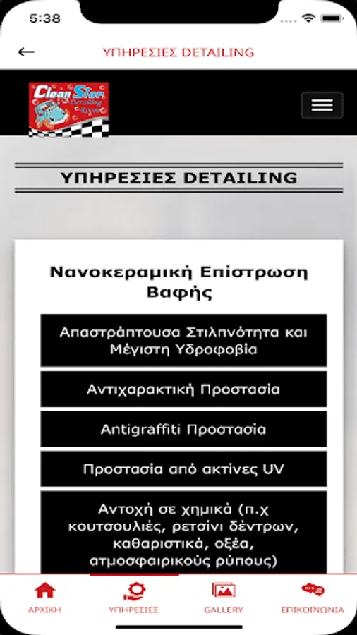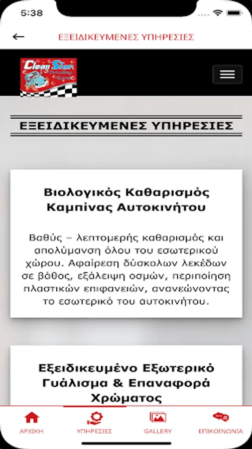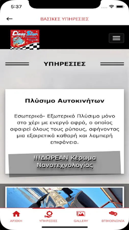 Through the Clean Stop App, the user can find out more information about the Clean Stop business, as well as be informed about all the services it provides as a Car Wash and Detailing Room.