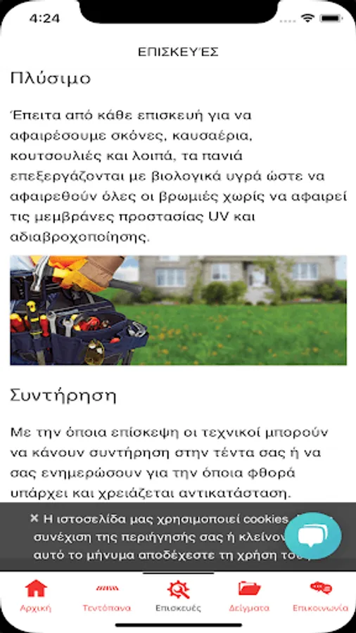 In the Tentahiko app you will find everything you need about the trade, installation and repair of awnings.