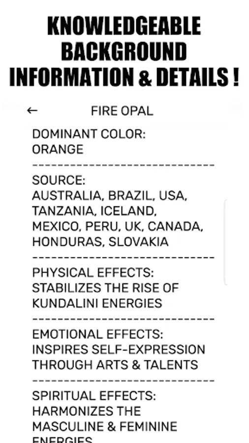 The idea of creating this app was inspired by Anxiety and to help others worldwide! Chakra Crystals Gem-stones is made up of sheer dedication, hard work, and wisdom. Each paragraph is designed to help raise awareness of the key facts each crystal contains and the different ways they connect to the Human Body. We hope to help educate others about crystals and their metaphysical properties so that we may all take advantage of this divine gift!