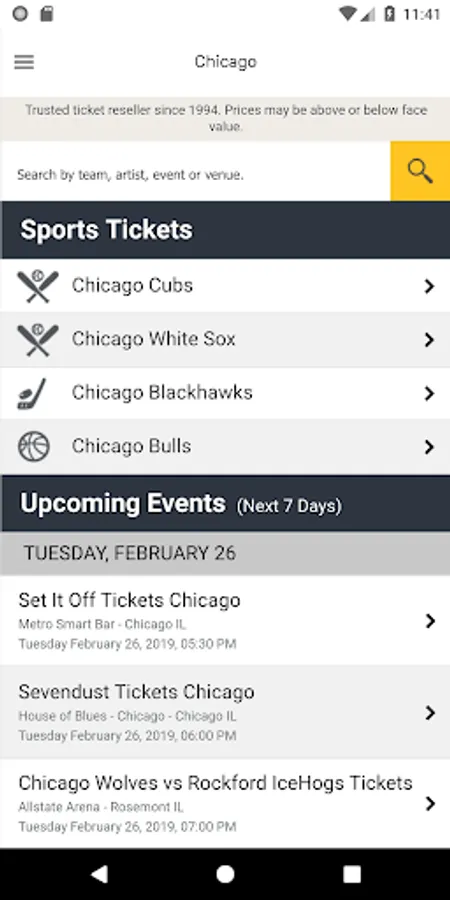 Since 1994, fans in and around Chicago have trusted Gold Coast Tickets with all of their ticketing needs! Whether you are looking to attend a sold-out event, treat clients to great seats, or grab last-minute tickets on the go, we've got you covered. We specialize in buying AND selling tickets to the Chicago Blackhawks, Bears, Bulls, Cubs, White Sox, and Fire. But we don't stop there - we also carry the largest in-stock inventory of tickets to the hottest concerts, theatre, and comedy events in and around the Chicago area.