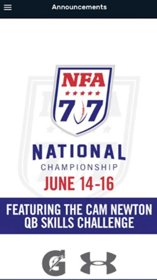 The NFA 7v7 app keeps you updated on all of our events and news. You can find upcoming tournaments or get important information about a tournament you are attending. The NFA 7v7 app is also the best way to keep up with your tournament's schedule and scores.