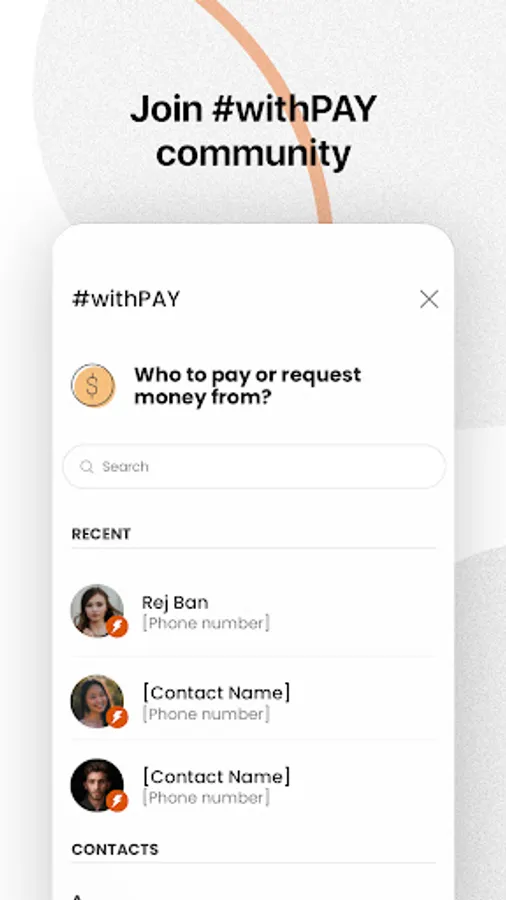 - Use #withPAY to transfer funds to members of the #withPAY community just using their phone number