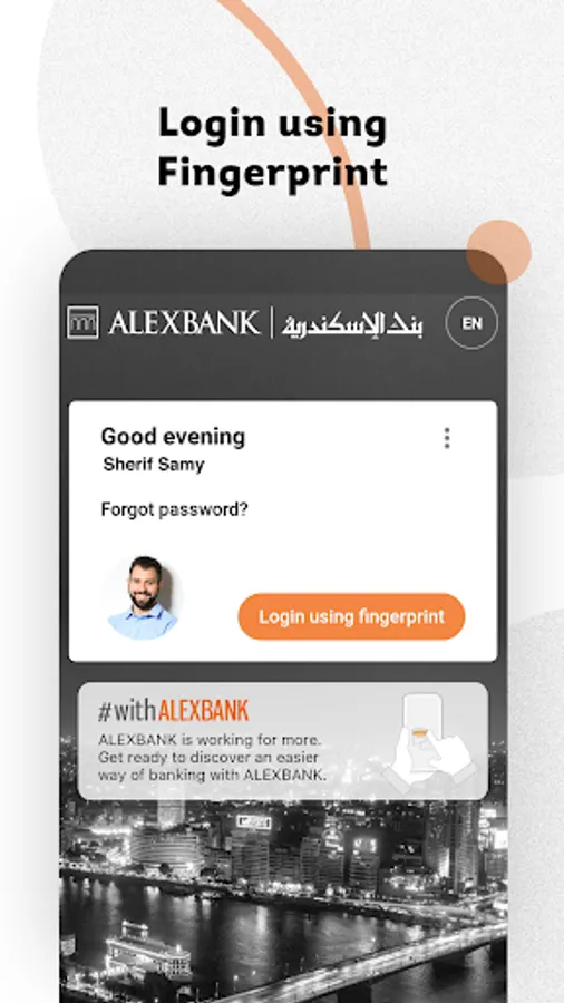 - Secure transfers to other accounts inside ALEXBANK or to any other account inside Egypt with the O-Key link.