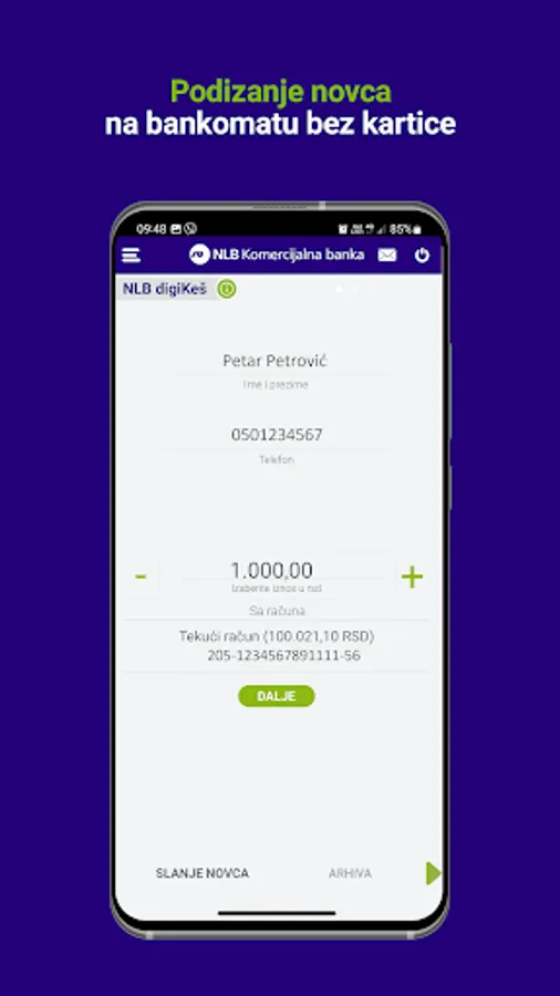 - NLB digiKeš – transfer from mBank application and withdrawal of forwarded money 24/7 every day of the year at all NLB Komercijalna banka’s ATMs
