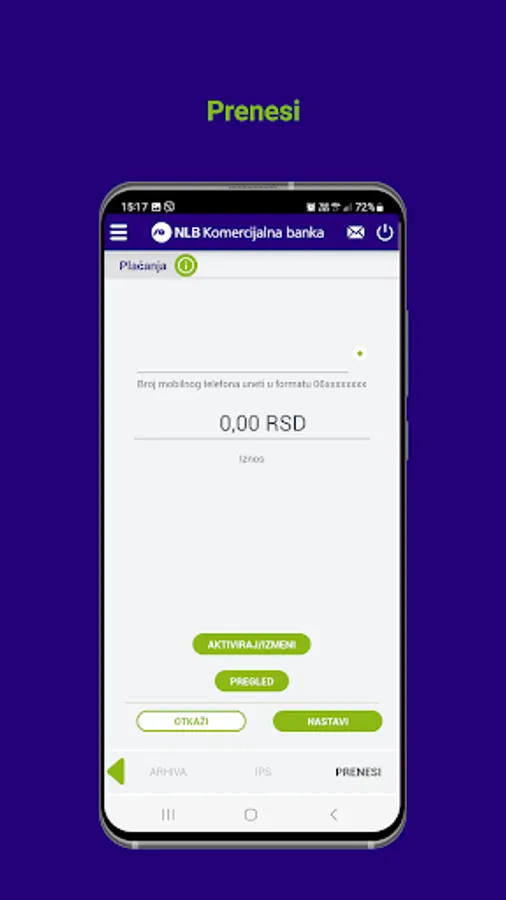 - Payment via the PRENESI services by entering the mobile phone number registered by the recipient of funds for this service