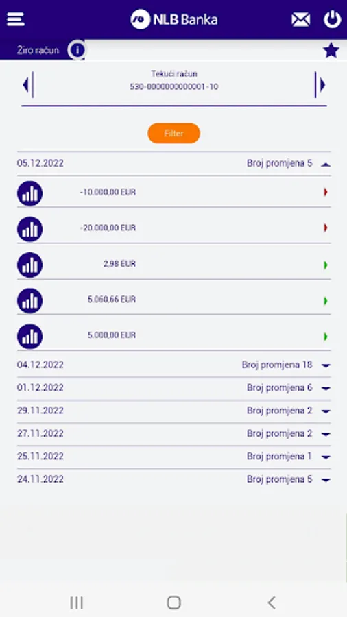 Mobile banking application intended for legal entities, clients of NLB Bank AD Podgorica. Intended for viewing the status and transactions of all client accounts in domestic and international payment transactions, viewing the exchange rate list, locations of branches and ATMs, and creating and executing payment orders in domestic and international payment transactions. It provides the possibility of creating payment templates, repeating completed orders, transferring between foreign currency and giro accounts of the same legal entity. The user has the possibility to view the accounts of all companies for which he is authorized when submitting a request for service activation.