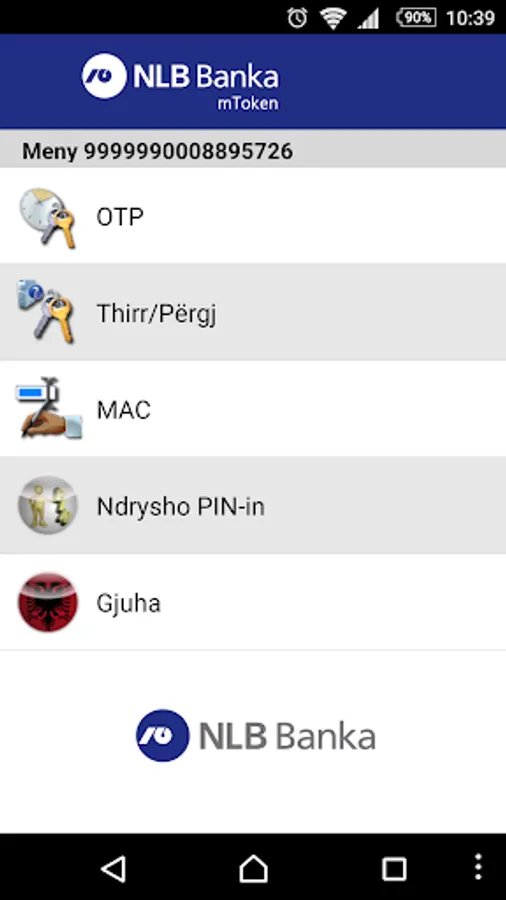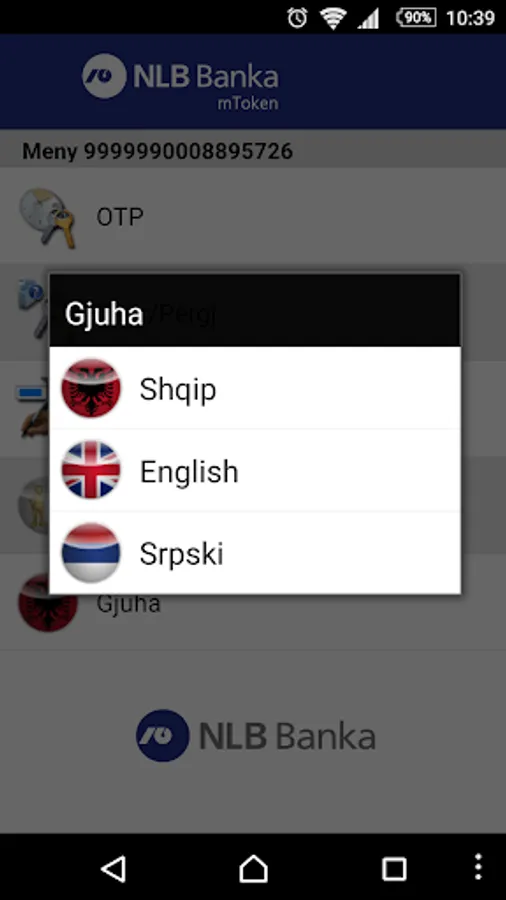 NLB Token Kosova grants the same security level as a physical token and is also protected by PIN known to the owner only. You may change the NLB Token Kosova access PIN at any time. Also, NLB Token Kosova is automatically turned off after three minutes of being inactive.