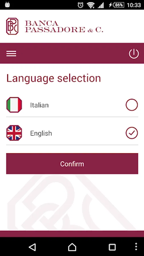 In order to access IB/MB Services, after entering personal login credentials (Customer code and static password) the system will request a “secure authentication" OTP password (six-digits numerical code), generated by Passadore Key app installed on a mobile device.