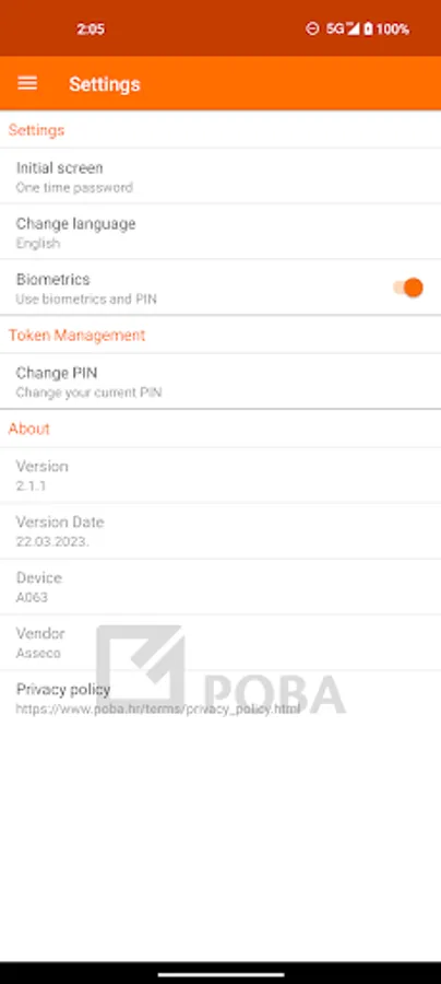 After a successful personalization, m_Token requires PIN entry and PIN confirmation, also needed for future login to POBA m_Token. You can activate biometric access to the application in the Application Settings