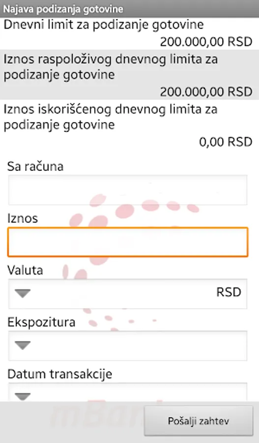 • Podnošenje zahteva za kredit i najava podizanja gotovine