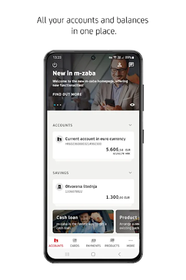 • Check balance and transactions of your accounts, saving accounts and loans.
