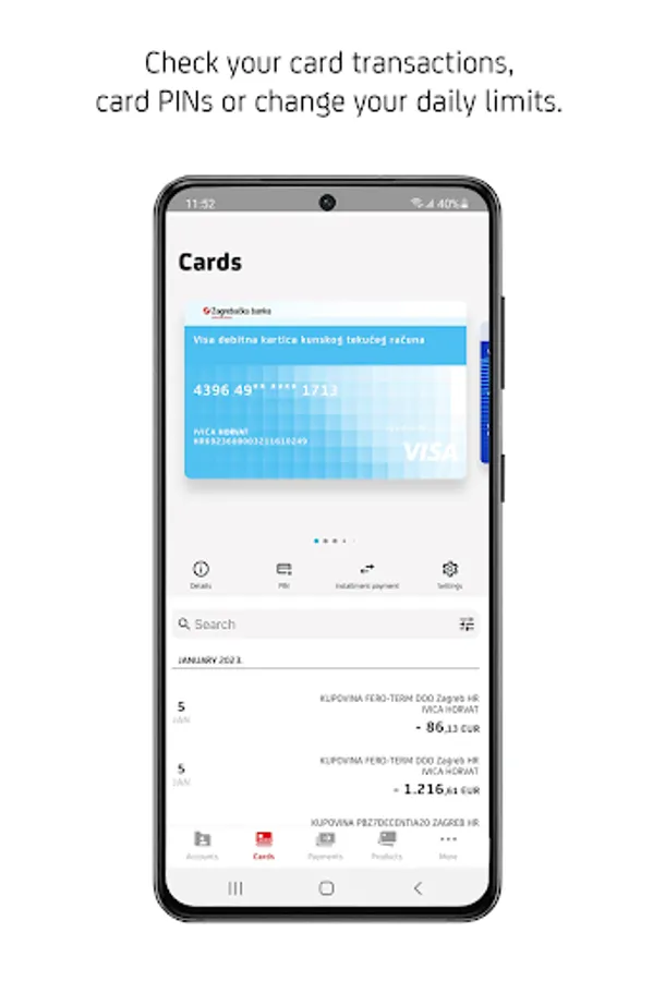 • Find information about cards, check PIN’s and manage daily limits.