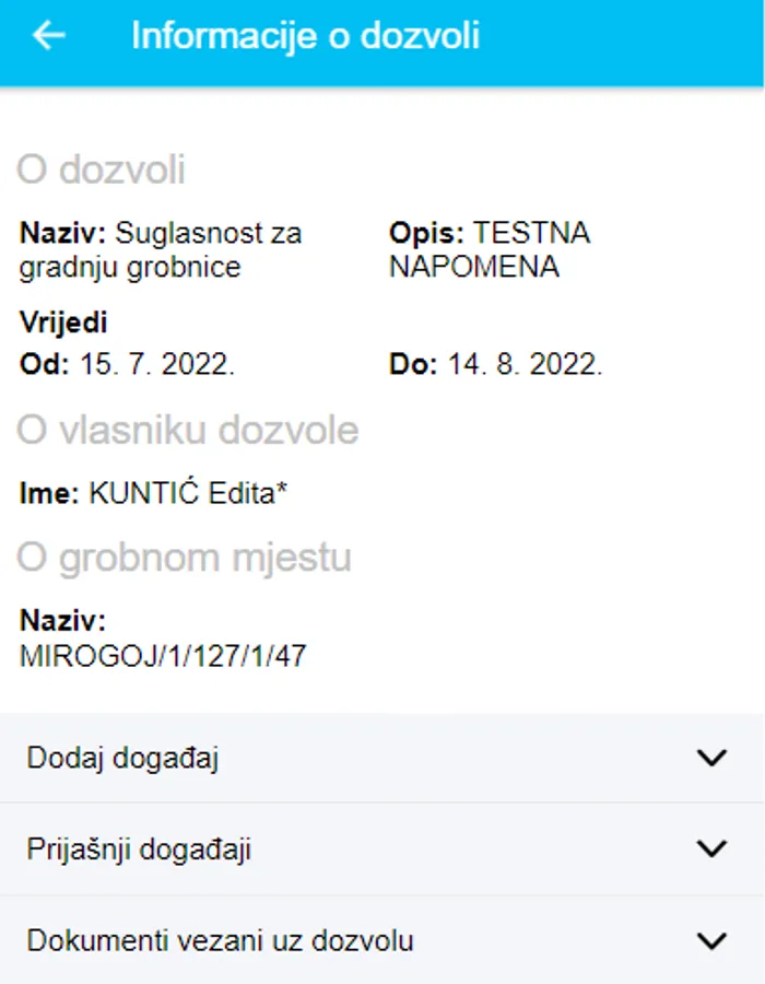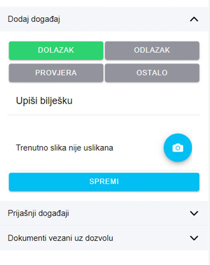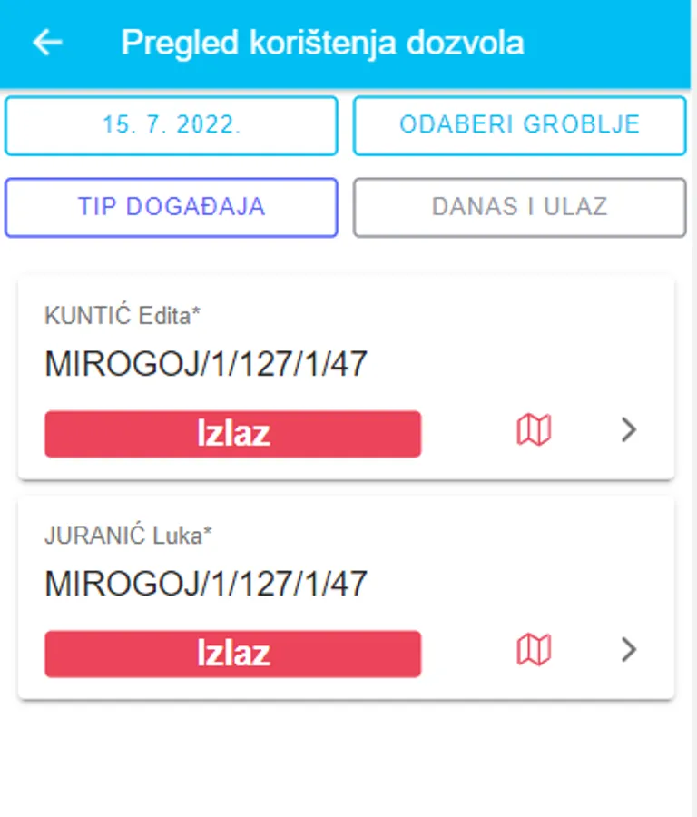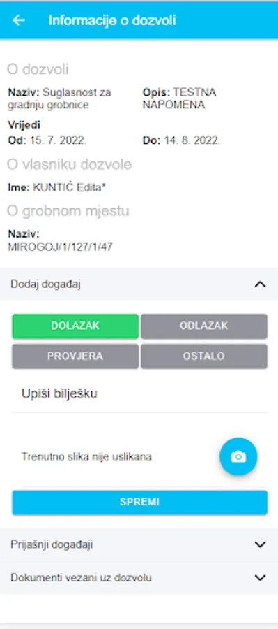 Skeniranje dozvola za ulazak na groblje i dodavanje dogadjaja