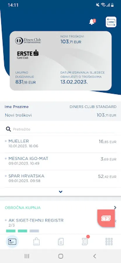 Erste Card Club has developed a mobile application that allows users to securely access information about the use of their Erste Card Club card (Diners Club, Mastercard and Visa).
