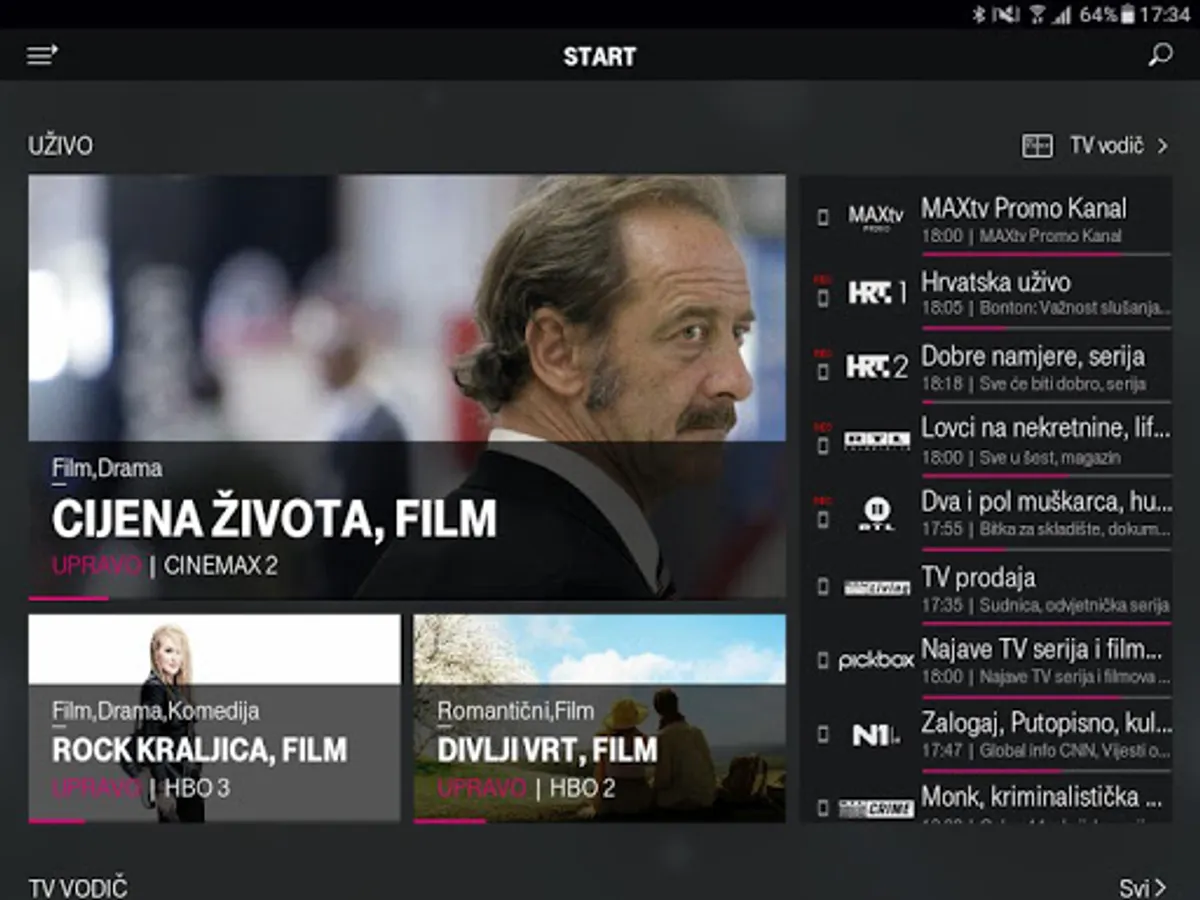 U MAXtv To Go aplikaciji pronađite preporuke najboljeg sadržaja baš za Vas - Gledajte utakmice, serije, filmove i crtiće uživo ili na zahtjev putem Videoteke, Videopaketa na pretplatu i PPV sadržaja bilo kad i bilo gdje!. Isprobajte multiscreen funkcionalnost te MAXtv To Go aplikaciju koristite kao svoj drugi ekran u obitelji.