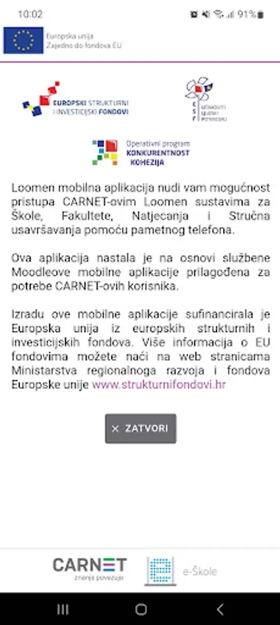 This application was created on the basis of the official Moodle mobile application, and was adapted for the needs of CARNET users.