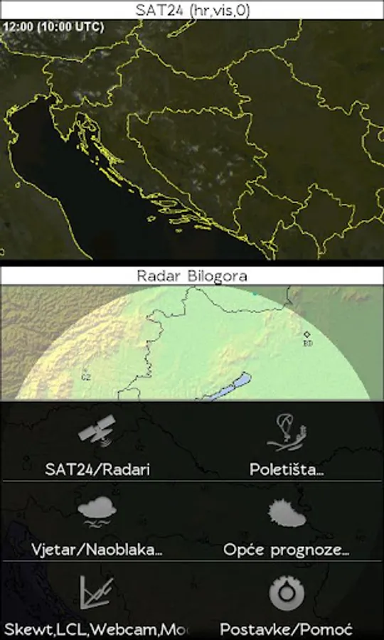 Radari Bilogora i Osijek, SLO radar (mogućnost dohvata prethodnih slika), SLO radar tuča, Radar Fossalon, Munje u zadnjih 2h