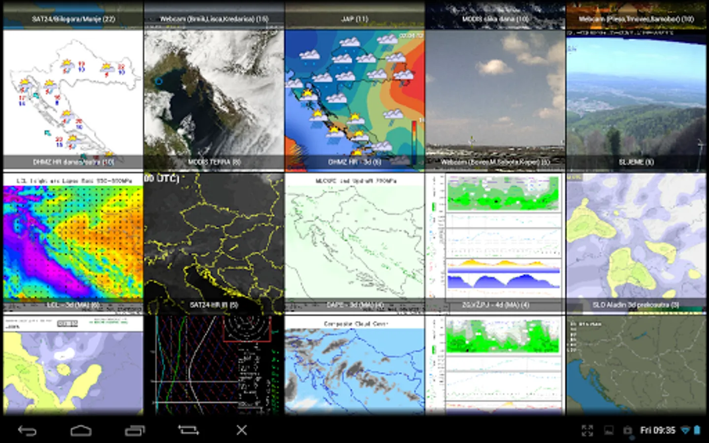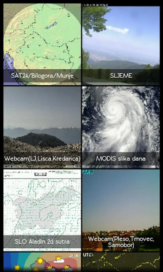 Webcams: Ljubljana, Brnik, Lisca, Kredarica, Bovec, Maribor, Murska Sobota, Koper, Portorož (podrška za ranije slike i podrška za sve smjerove kamera na pojedinoj lokaciji)