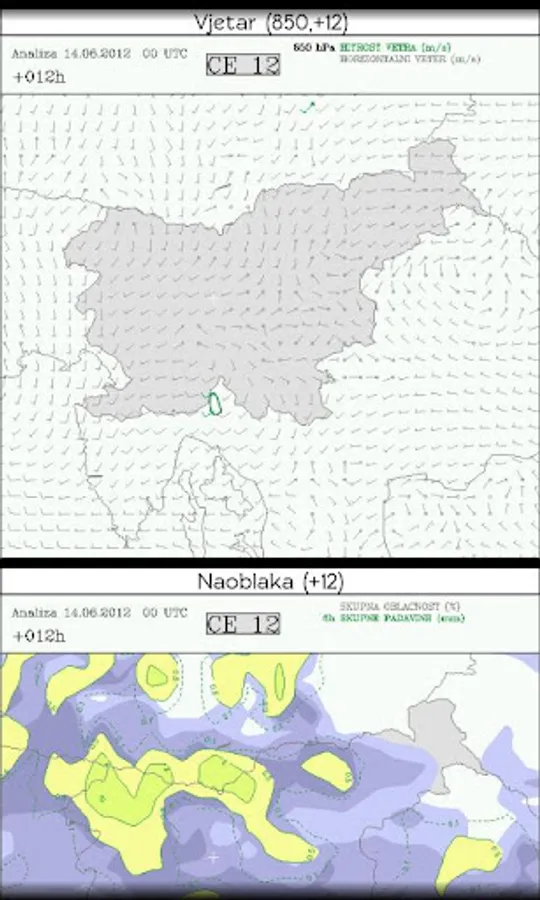SLO Aladin prognoze vjetra i naoblake (stara za 2 dana i nova za 3 dana unaprijed)
