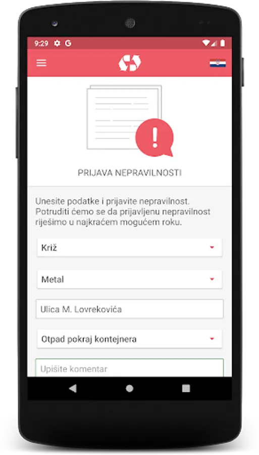 The application is intended for the citizens of Ivanic Grad to facilitate their finding of a waste disposal site according to the desired waste type and their current location.
