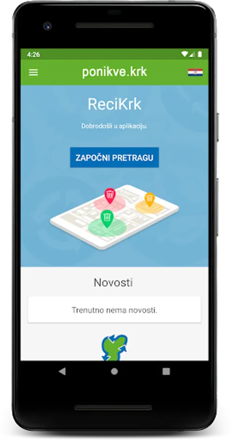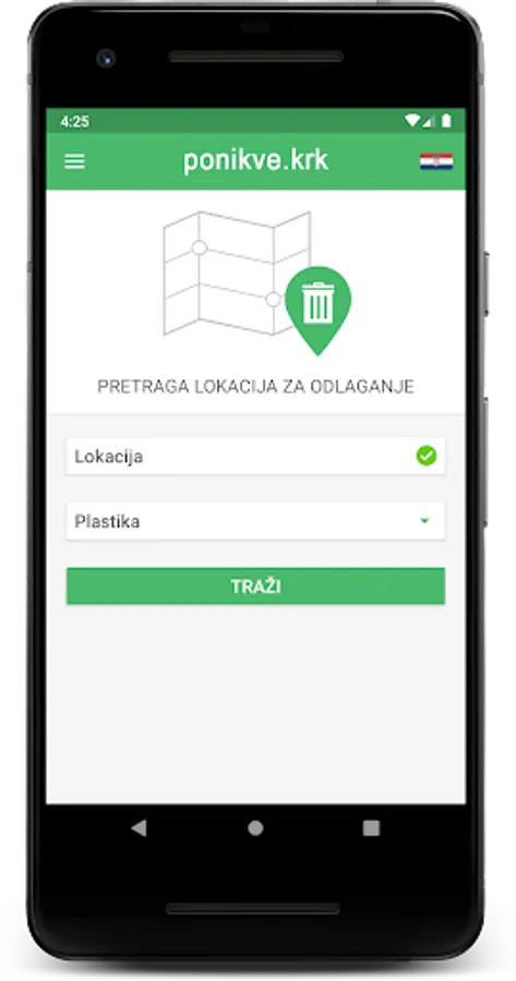 The application is intended for citizens and visitors of the island of Krk to facilitate their finding of a waste disposal site according to the desired type of waste and their current location.