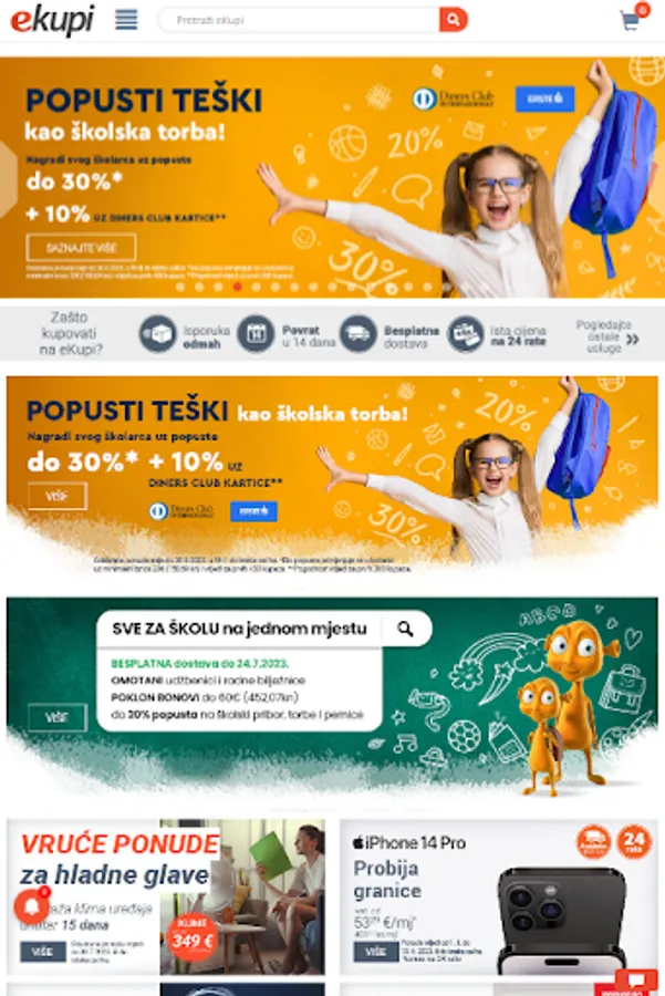 Your search has come to an end. From now on, shopping on the largest Croatian Internet store has become easier than ever and at any time within reach, in your pocket or bag. Get to know the eKupi mobile application - a place that brings together thousands of products from various categories such as IT, white goods, televisions, gaming, sports, toys, tires and school supplies and books and many others, and brings you various interesting promotions and benefits every week .