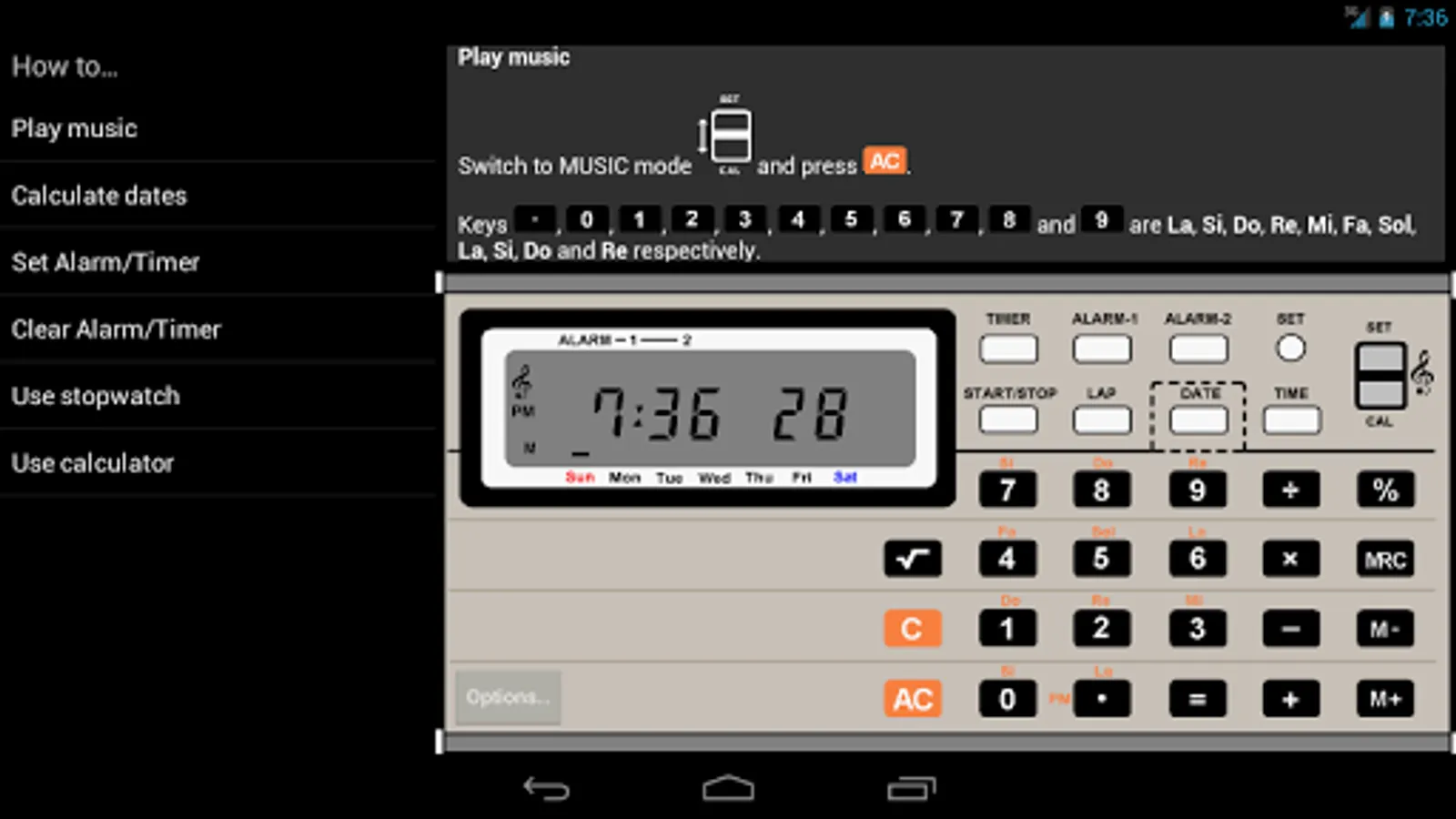 calculator, stopwatch, alarm clock with timer and calculator in one.