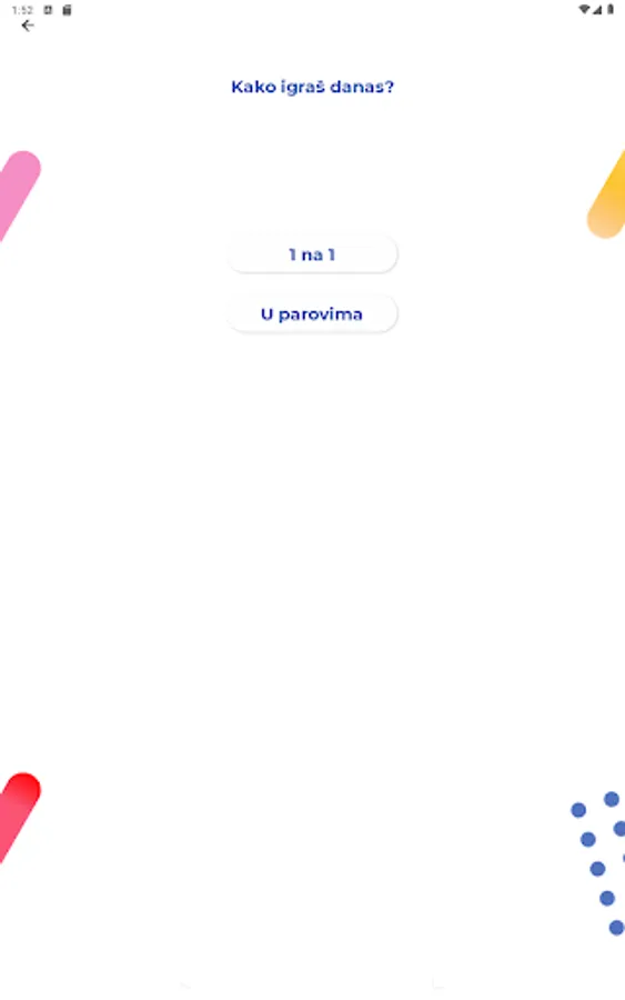 - 1 on 1 game or in pairs (so that the whole team can participate)
