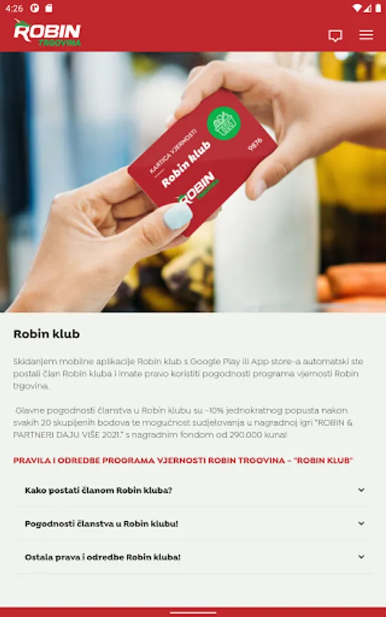 With the mobile application of the Robin store loyalty program, take advantage of all the benefits of membership (special discount, the opportunity to participate in monthly and annual sweepstakes, information about events, discounts, etc.). Robin gives more!