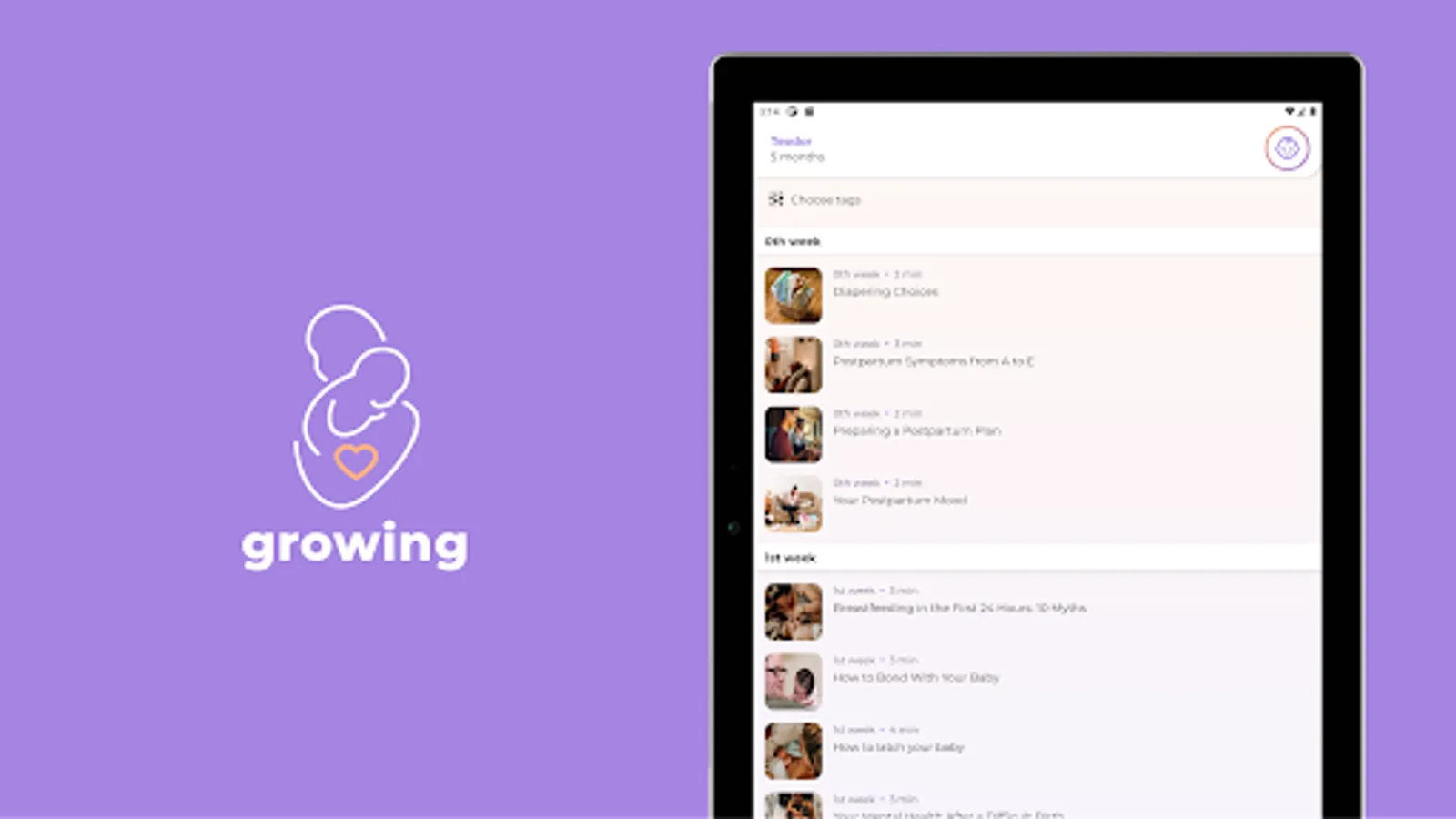 Growing.app is the result of a collaboration between parents’ groups and independent health practitioners, breastfeeding specialists, psychologists, doulas, parenting experts, babywearing and car seat experts. The information in the app is based on the highest level of evidence and best practice and tips and tricks provided by parents who have been there, with no commercial interests involved.